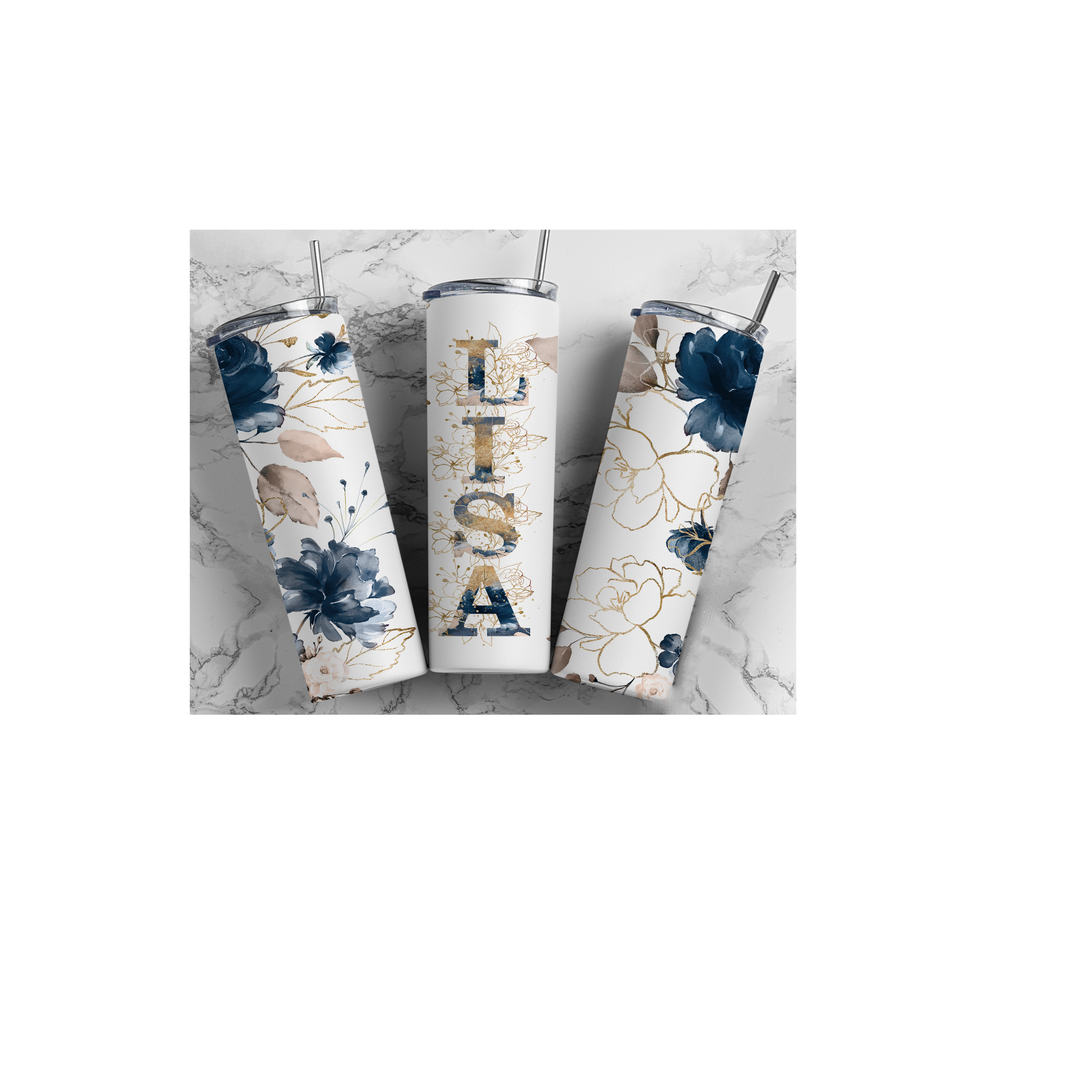Blue and Gold Floral 20oz Skinny Tumbler (Made in America)