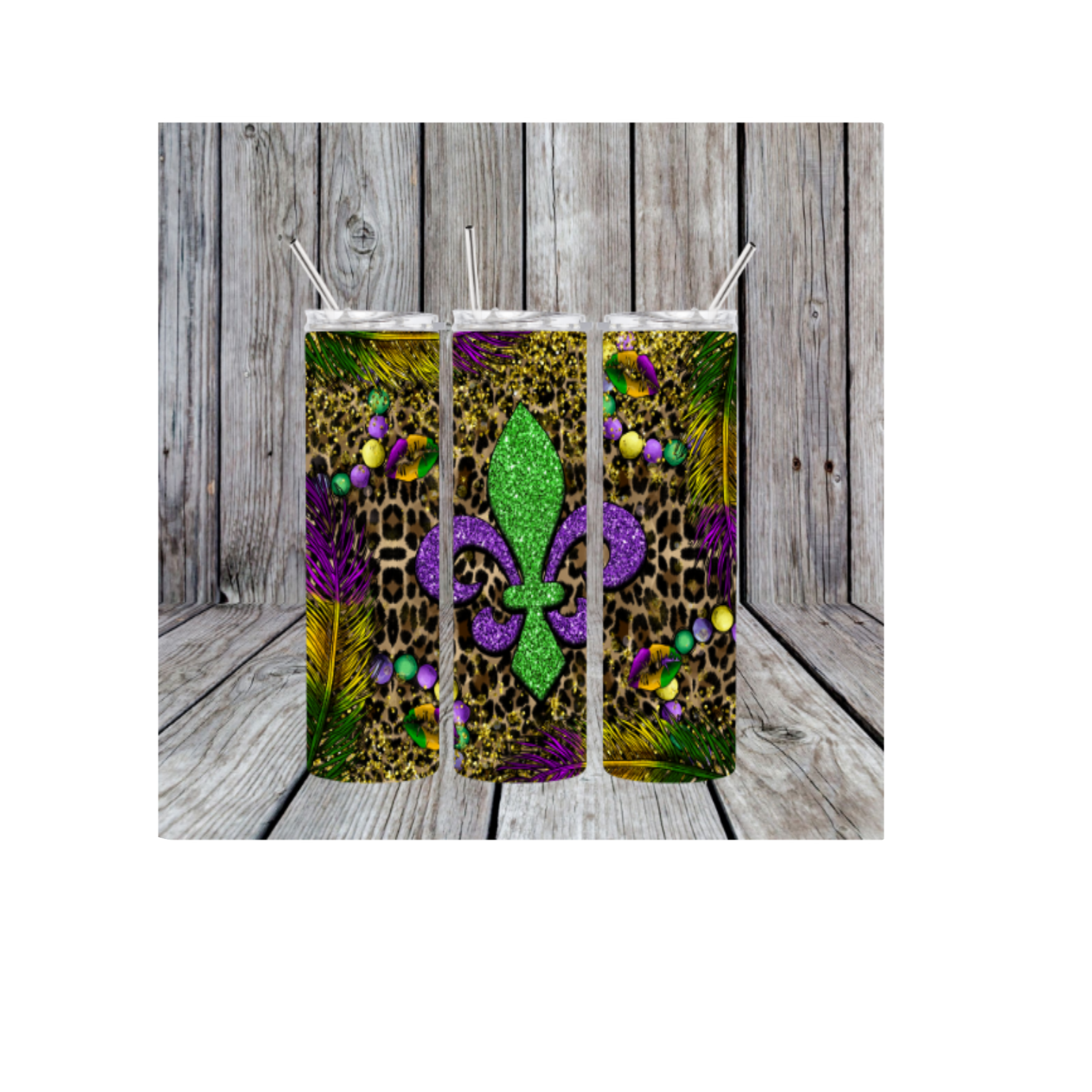Faux Glitter Fleur De Lis 20oz Skinny Tumbler (Made in the USA)