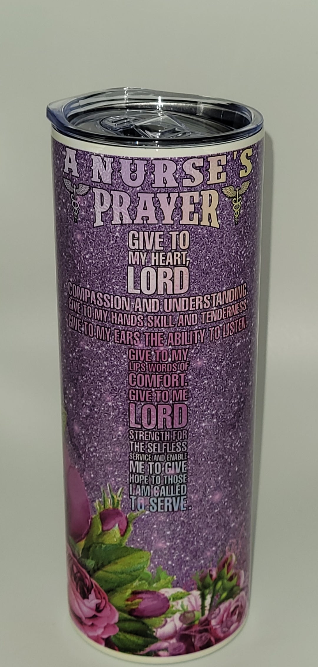 This vibrant 20oz skinny tumbler is offered in two colors and sure to put a smile on your favorite nurse.
