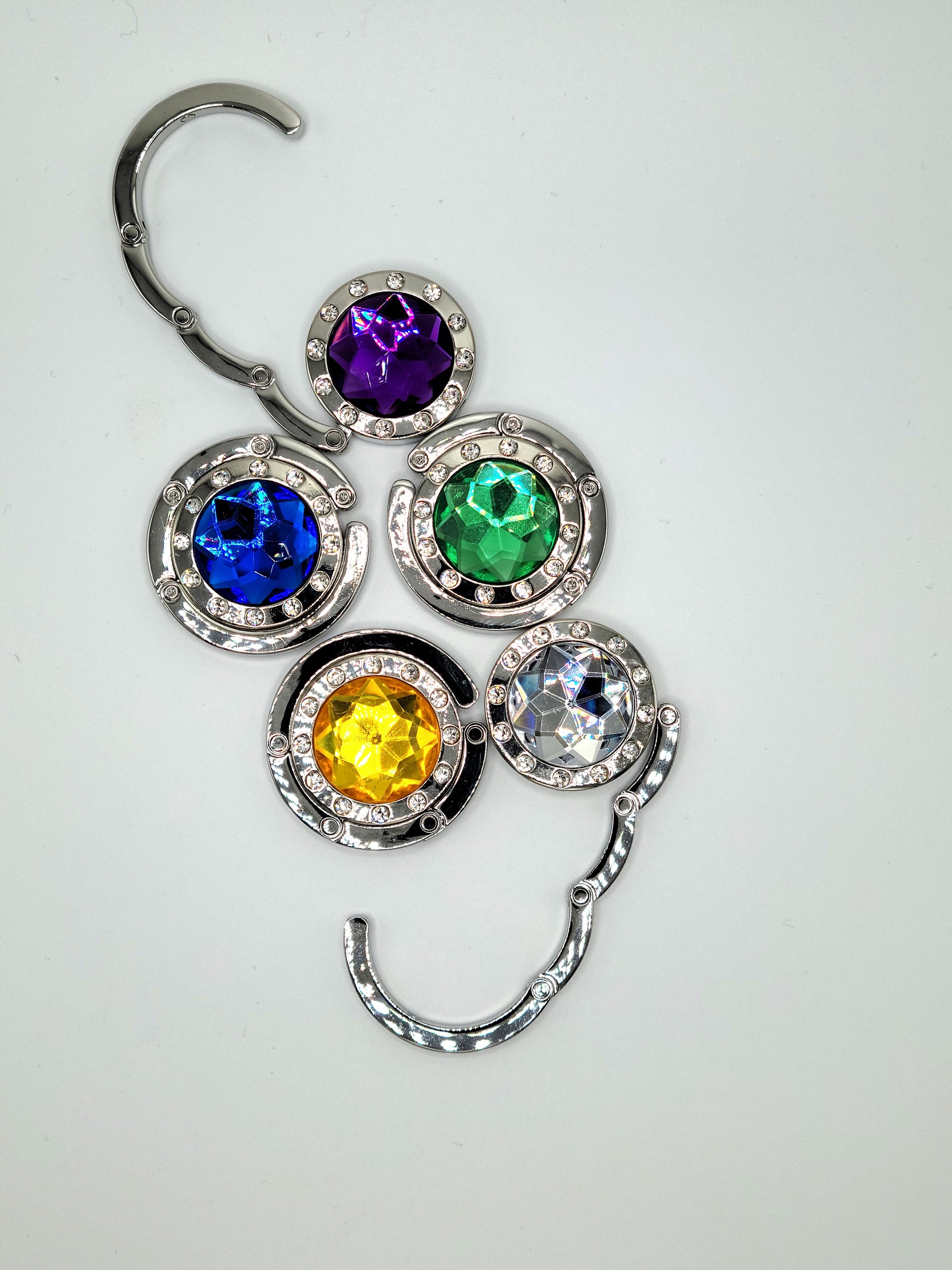 Ladies, don't you just hate to put your purse on the floor when you are in a restaurant or other venue? Well, you don't have too anymore. Get one of these jewel-colored purse hooks to hang your purse on while you are enjoying your meal or other social event. Check out all the fun colors.