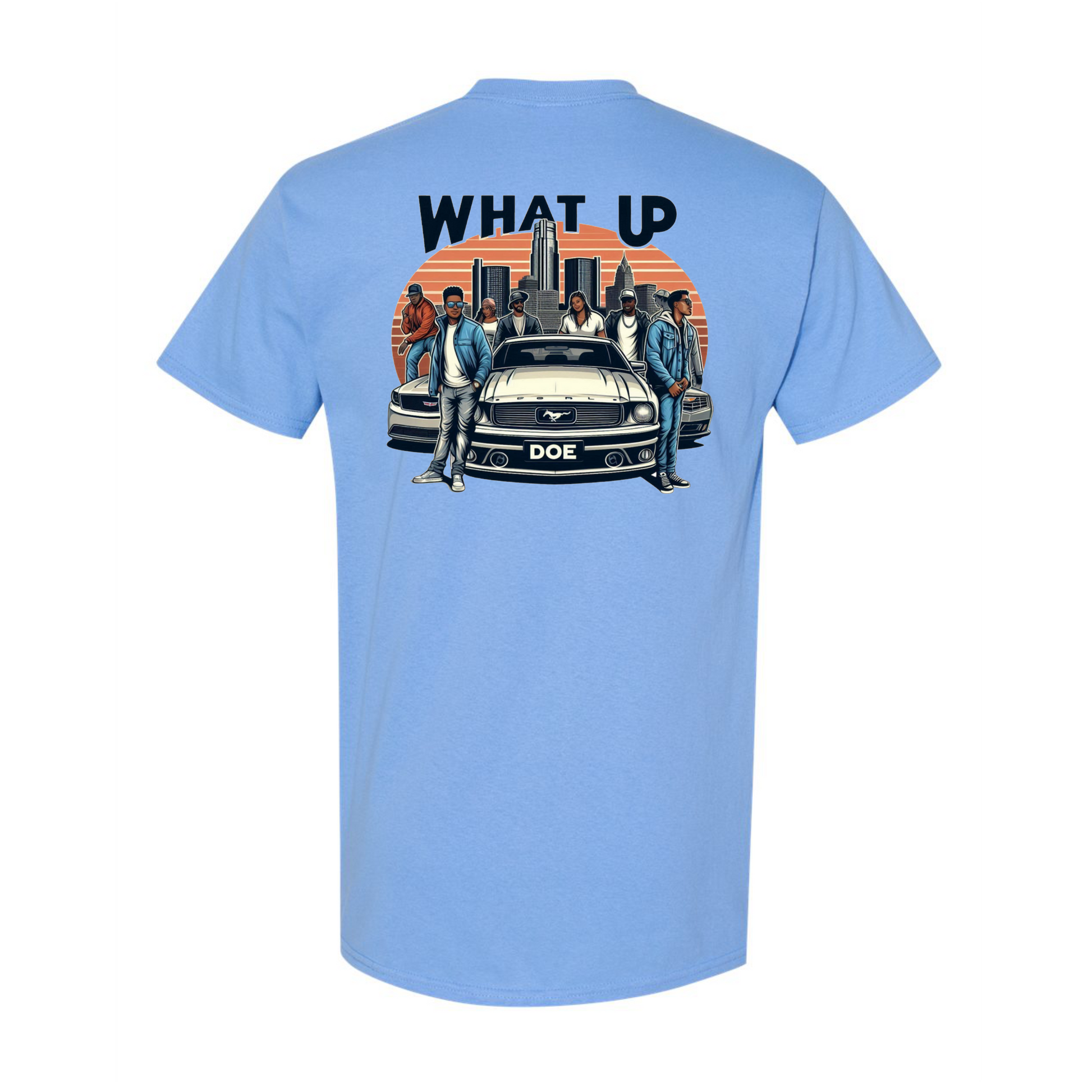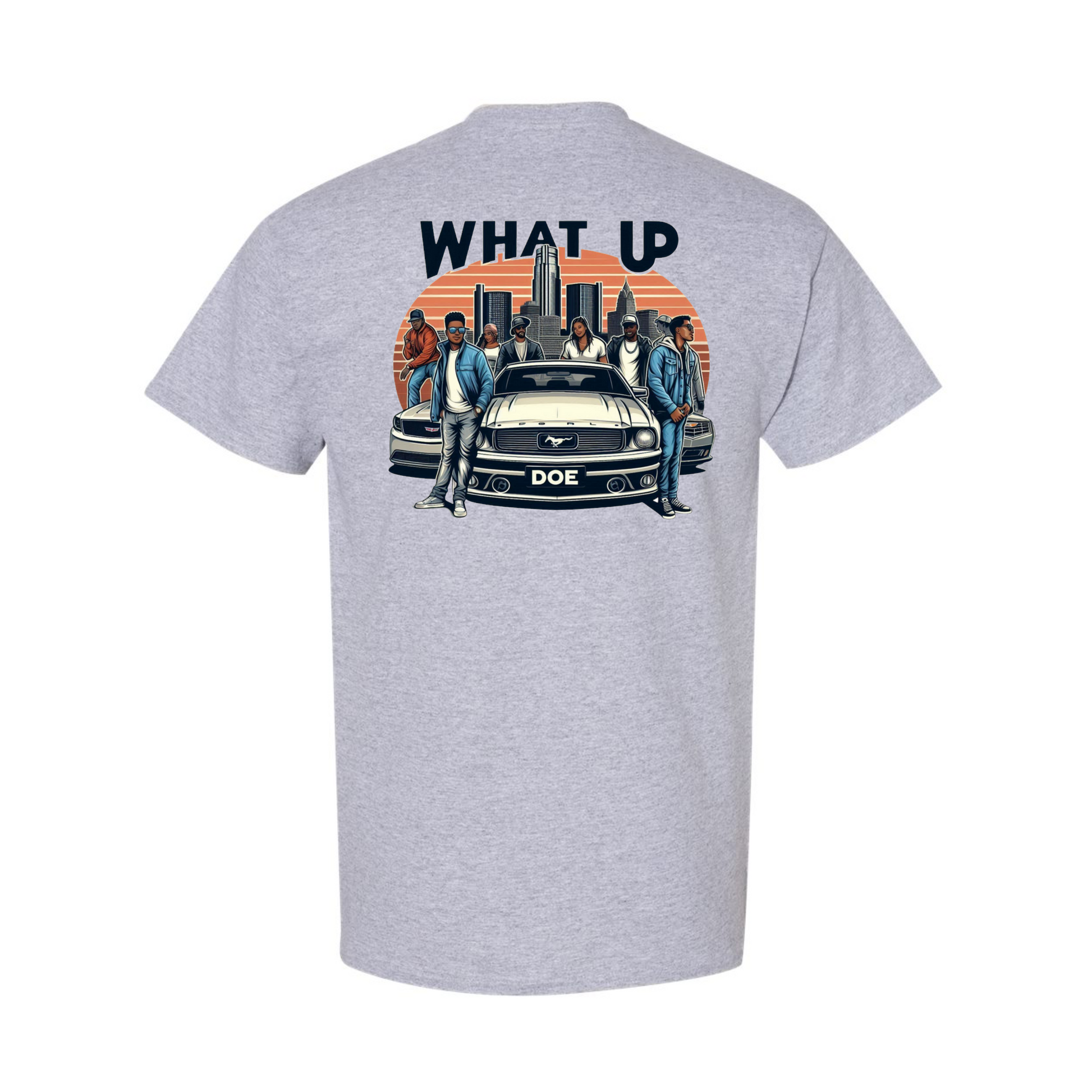 Show your love for Detroit City with this What Up Doe T-shirt. This shirt sports a classic Detroit D on the front left pocket and the design on the back.