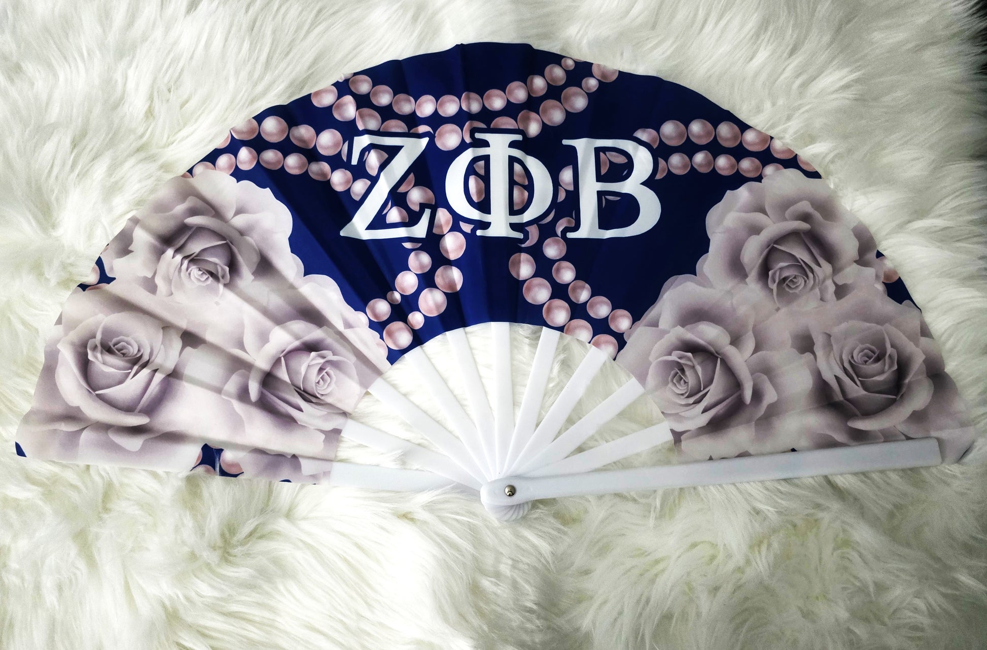 Ladies of Zeta Phi Beta, Where Dem Fans At? The Press has one for you. This beautiful 13-inch Pearl and Rose Zeta fan will clack for sure. Get yours before they are gone.