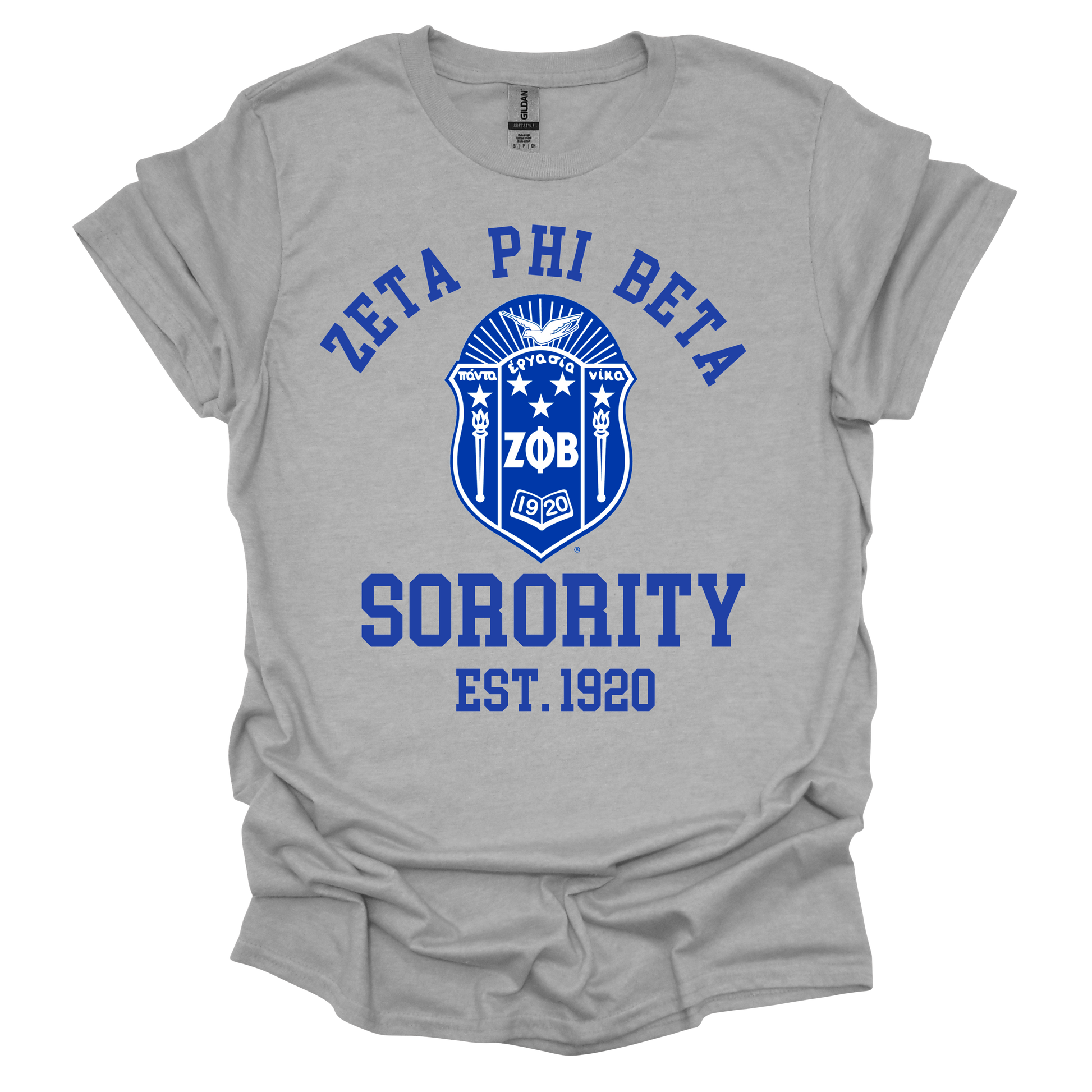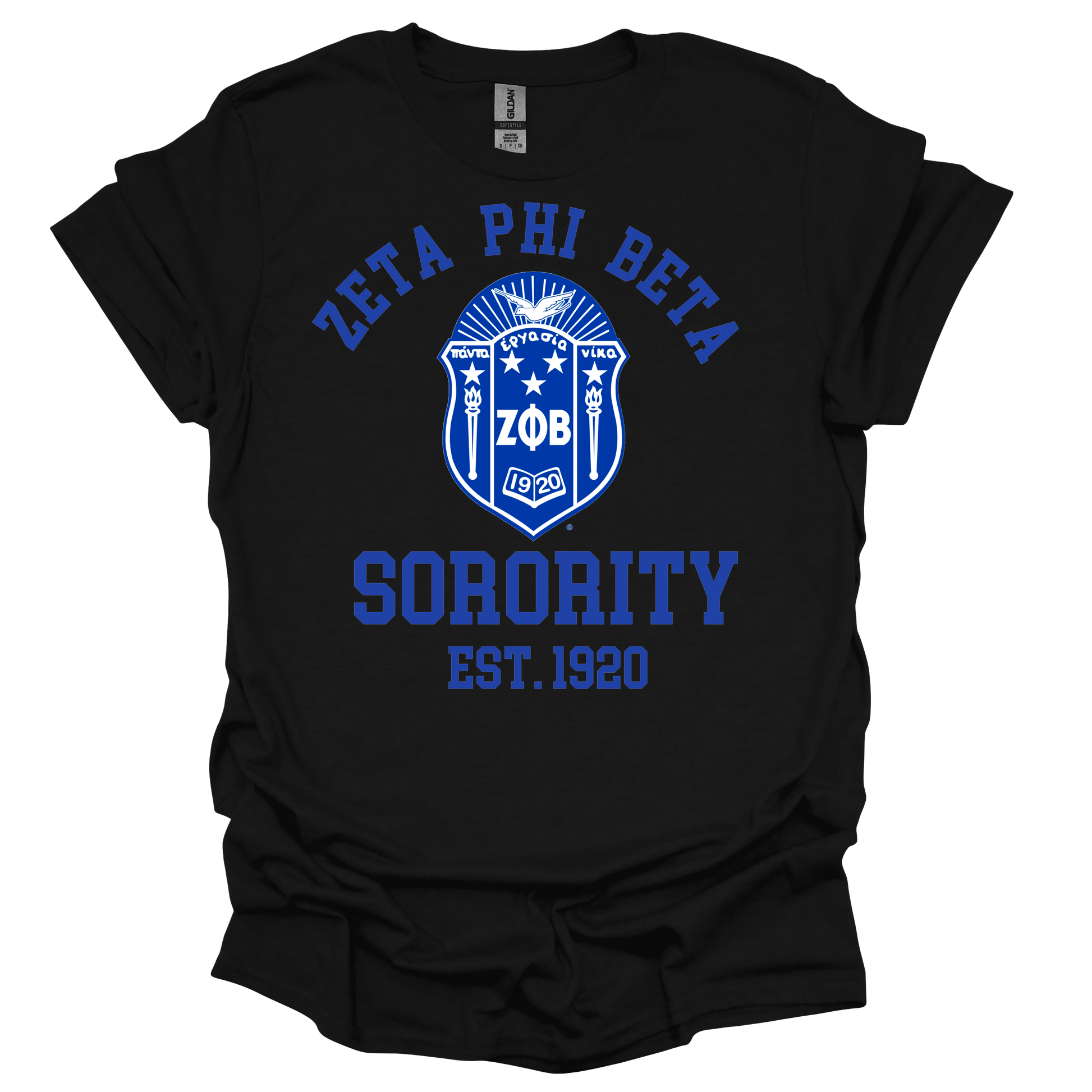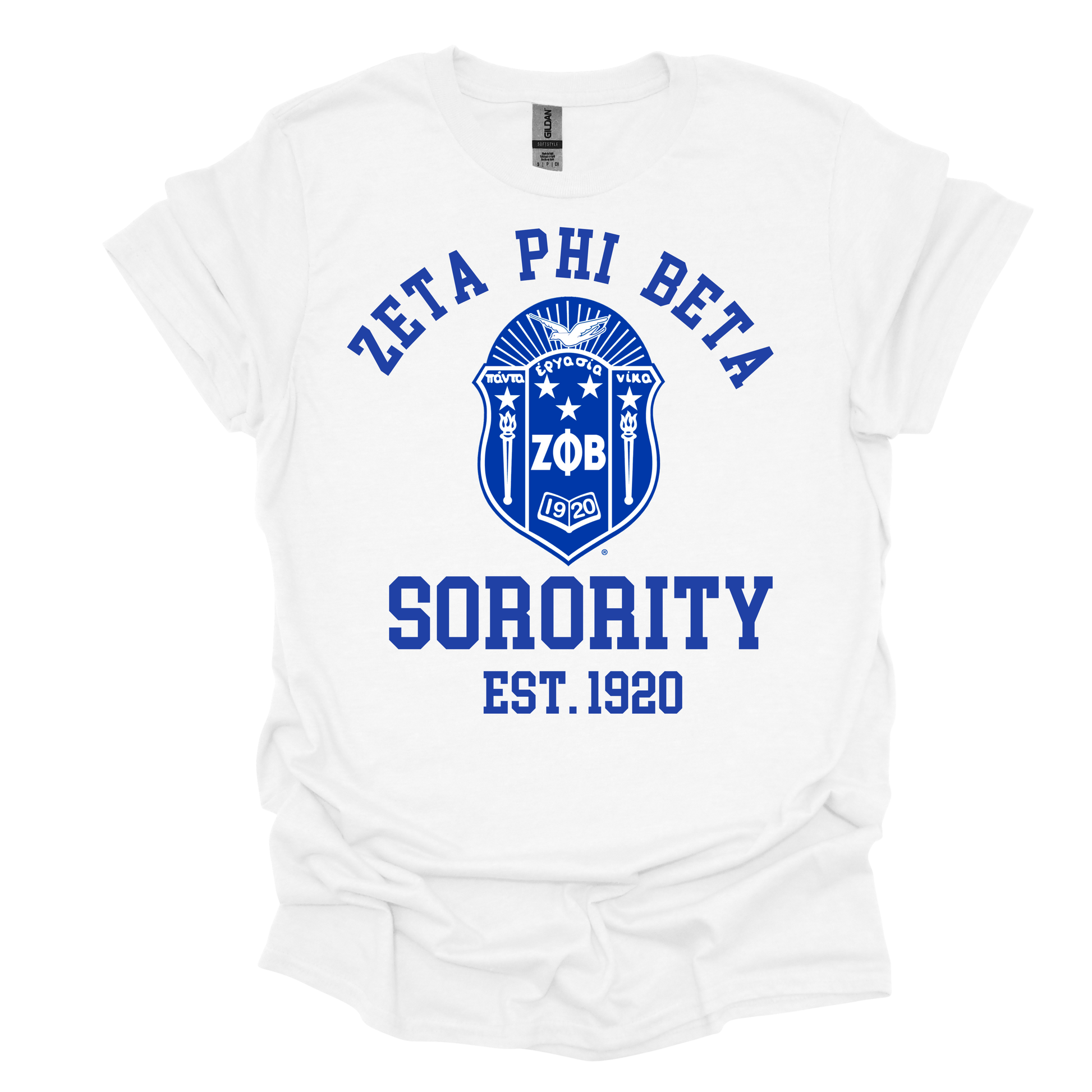 Zeta Phi Beta curved letters with the official Shield is 100% cotton and available in three colors.