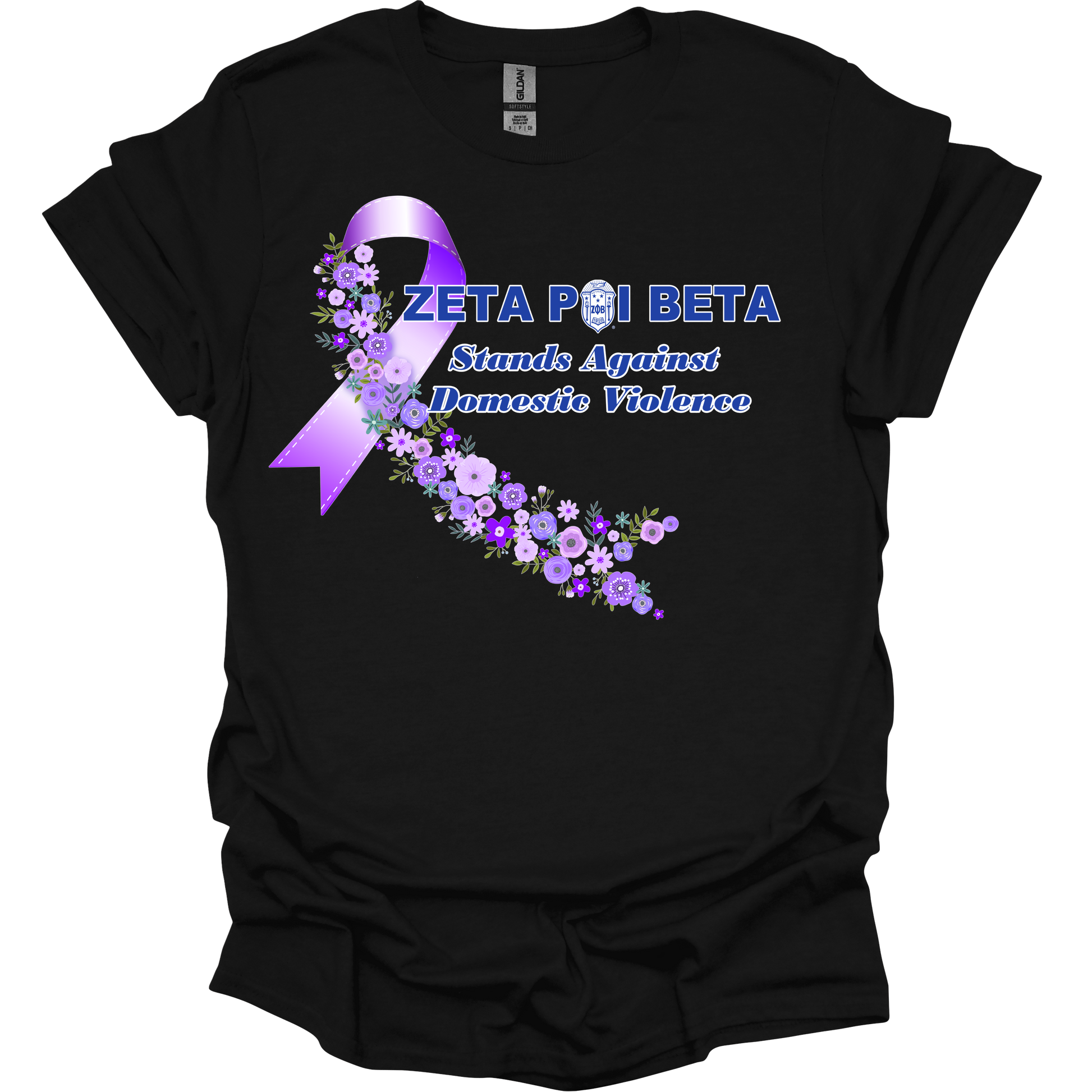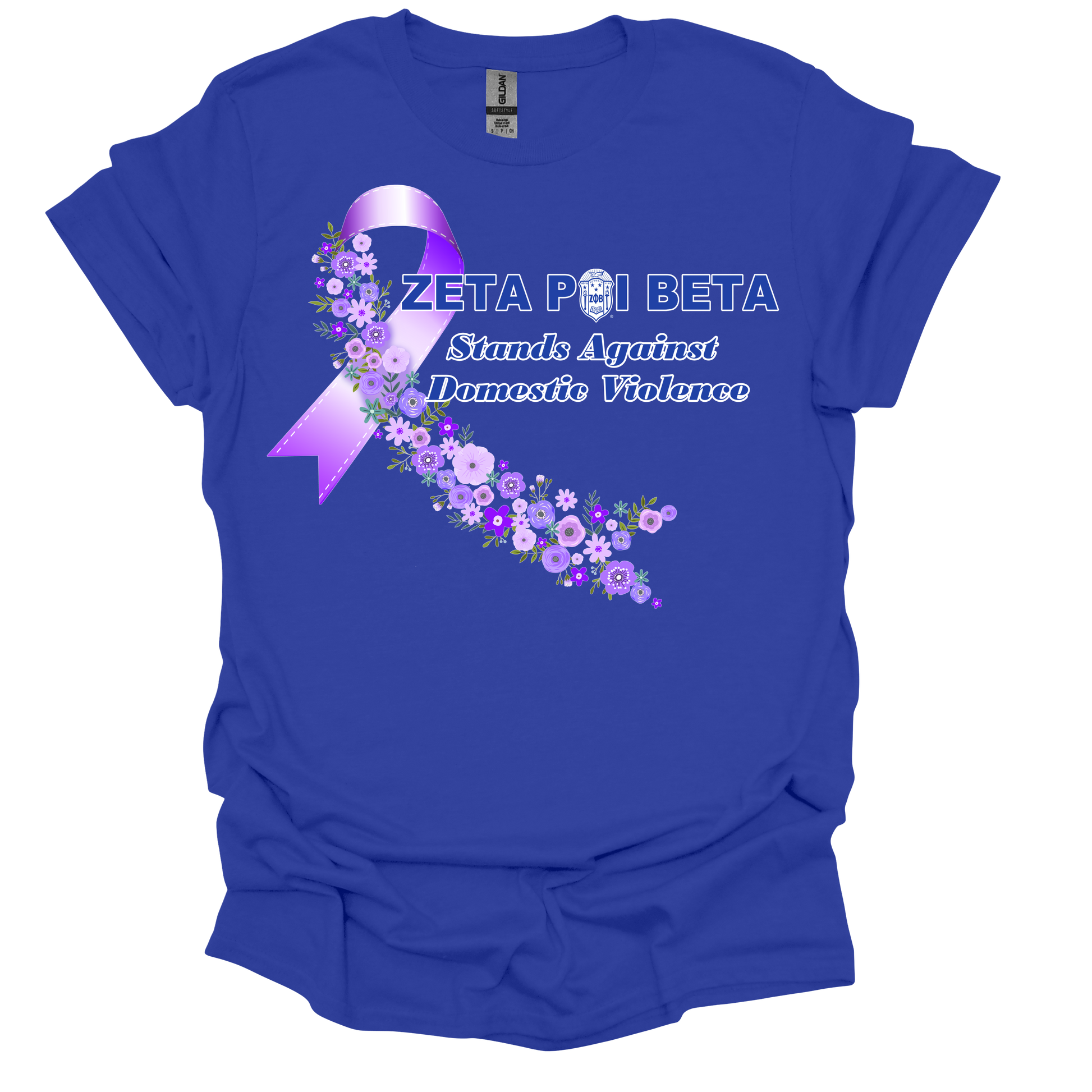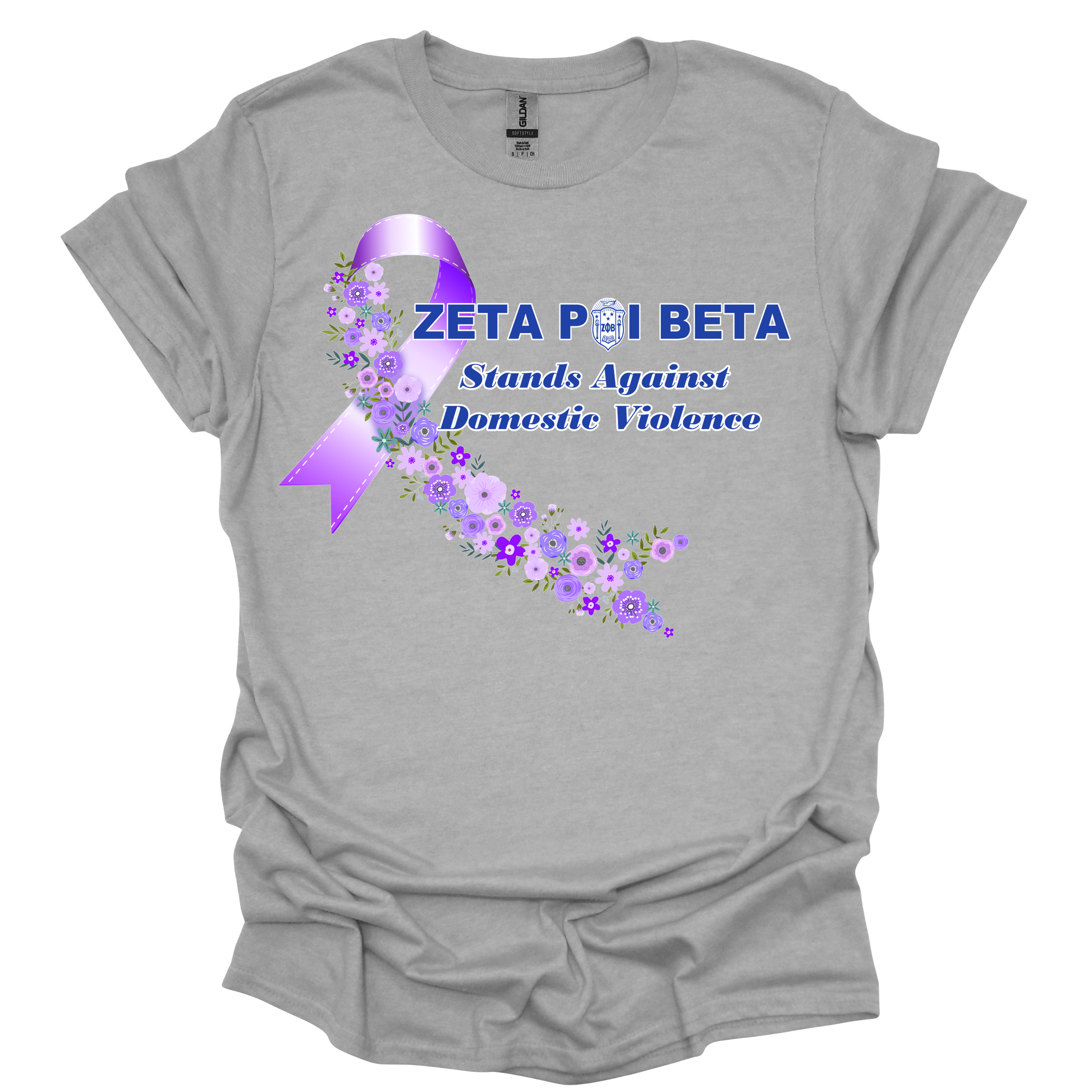 Take a stand against Domestic Violence with the Zeta Phi Beta Domestic Violence Purple Flower Ribbon Tee.