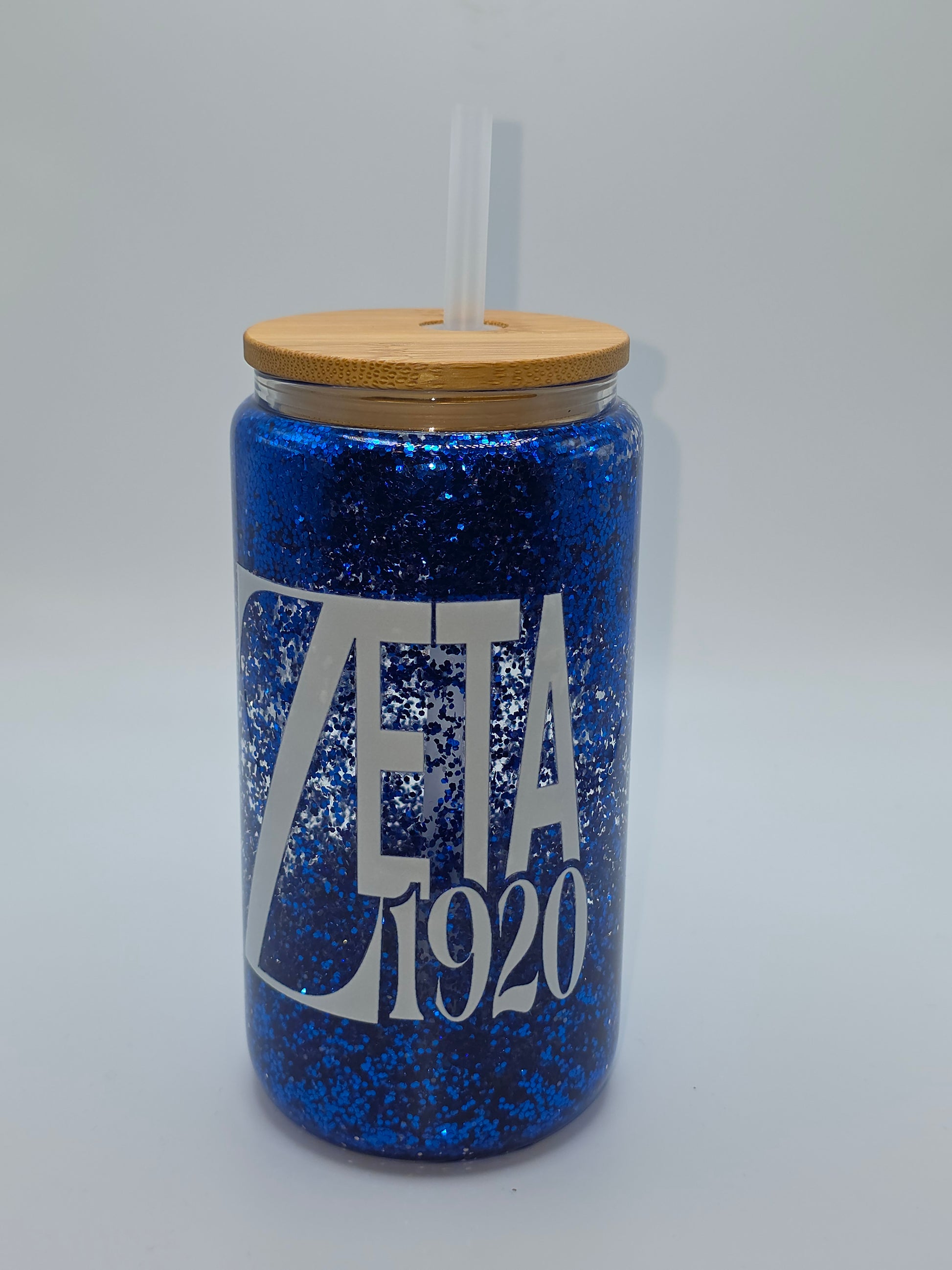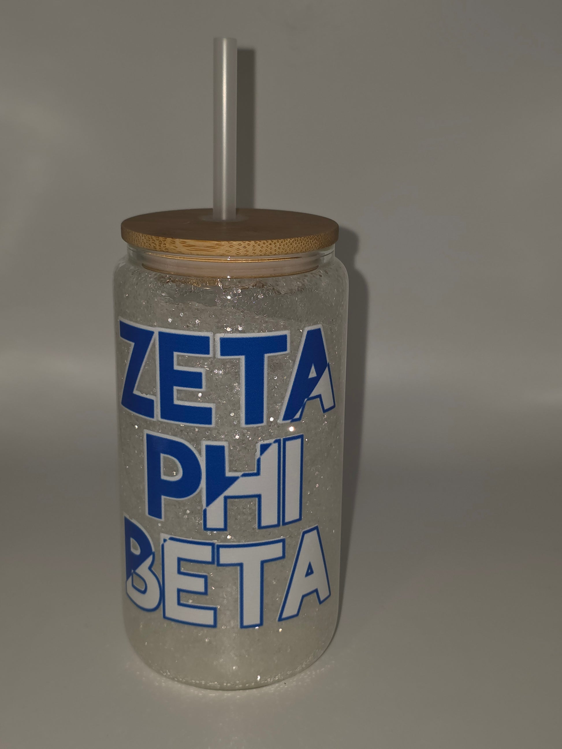 Mason jars are taking on a new look. Get this Zeta Phi Beta glass tumbler with a bamboo lid and straw. Choose from two designs.