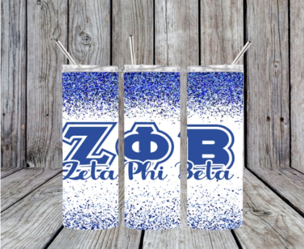Zeta Phi Beta Faux Glitter 20oz Skinny Tumbler