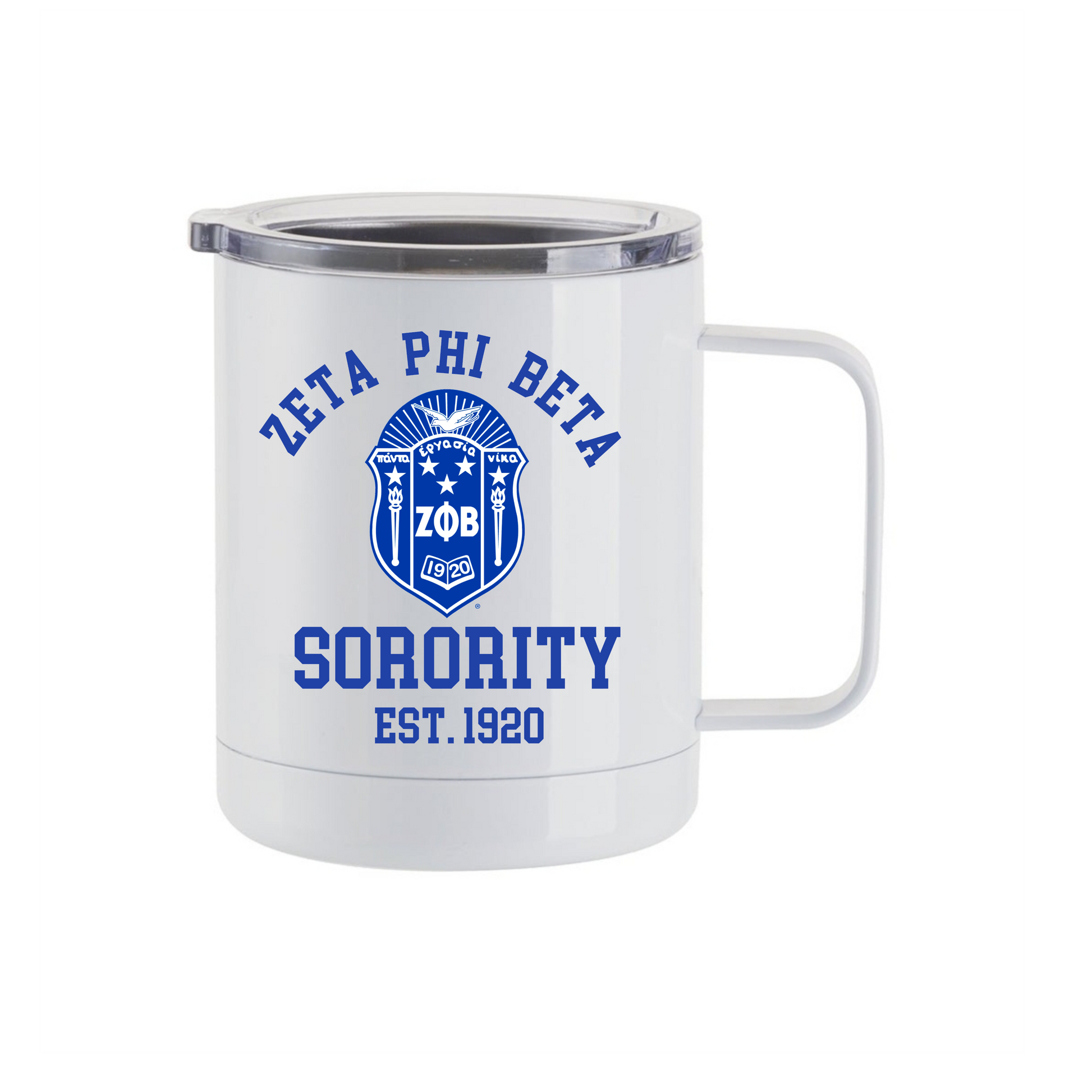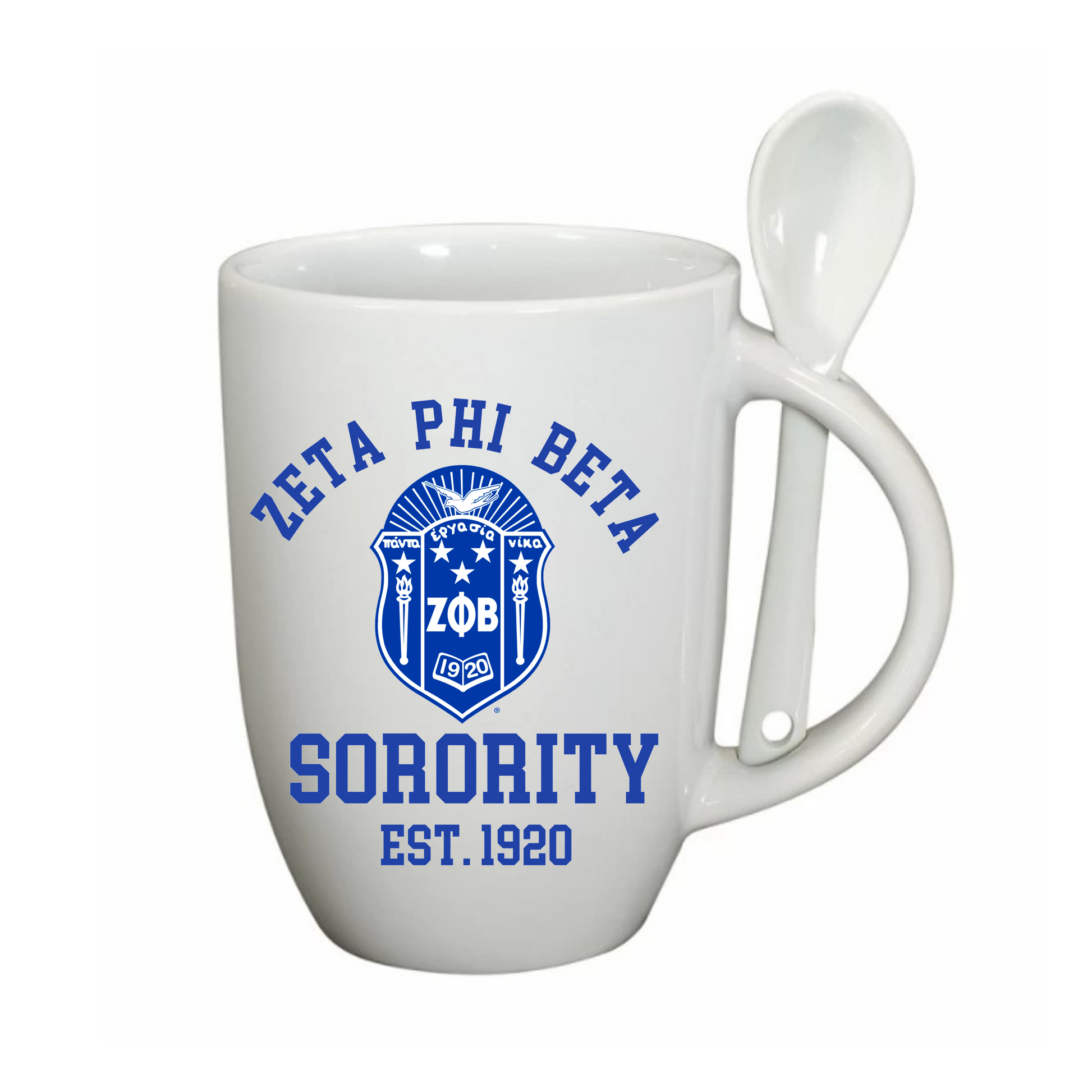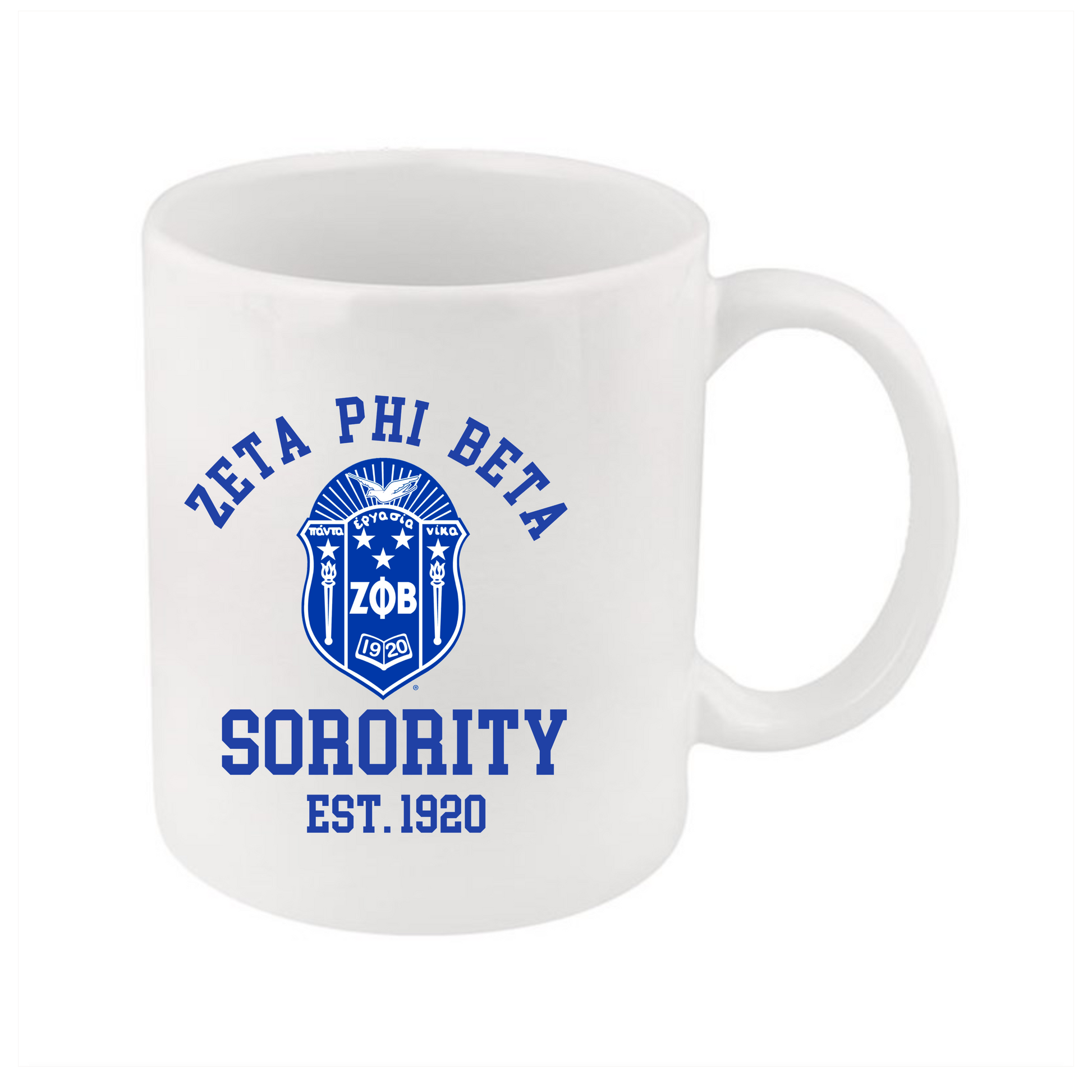 This is a classic design style with curved lettering and the Zeta Phi Beta Shield. This mug is available in three different styles.