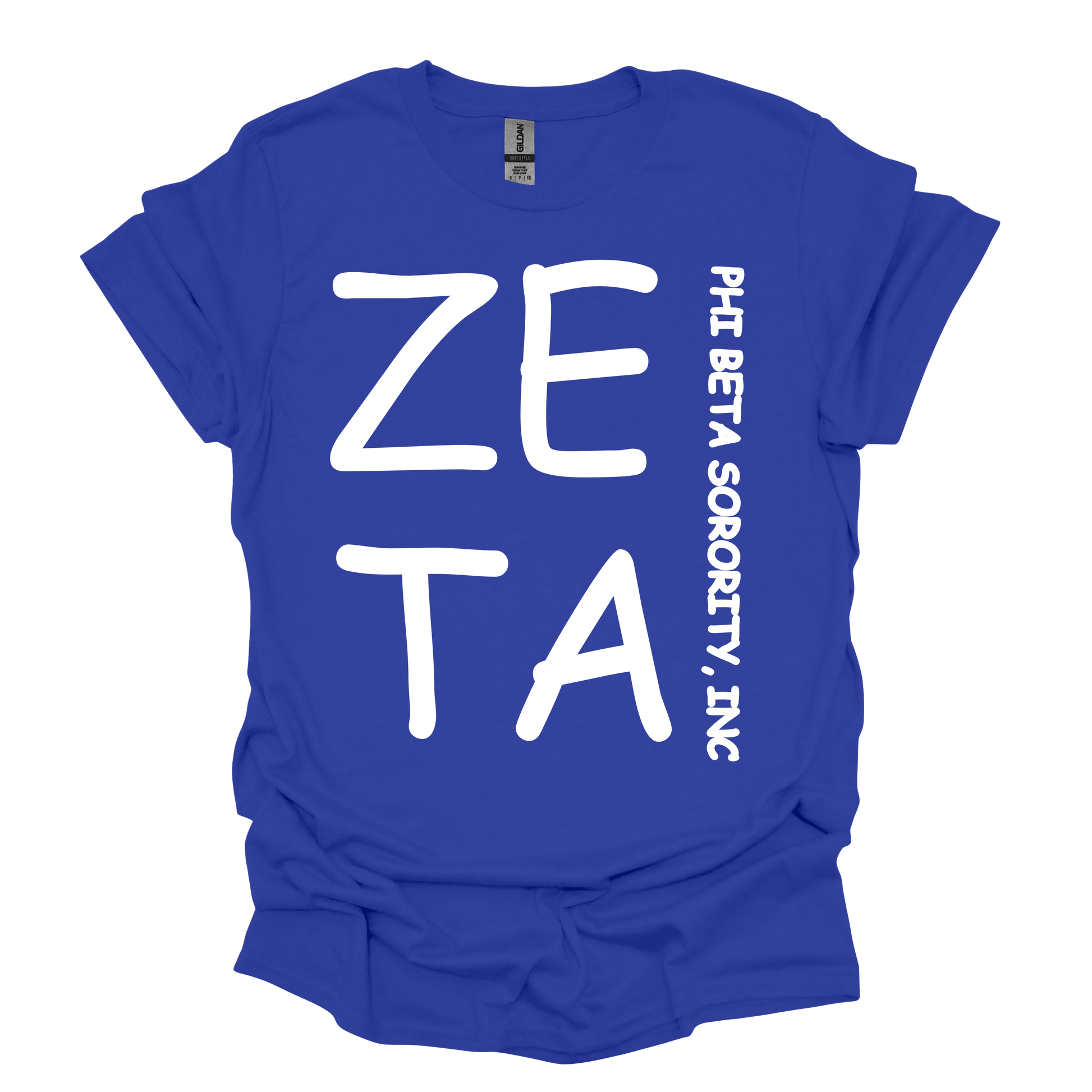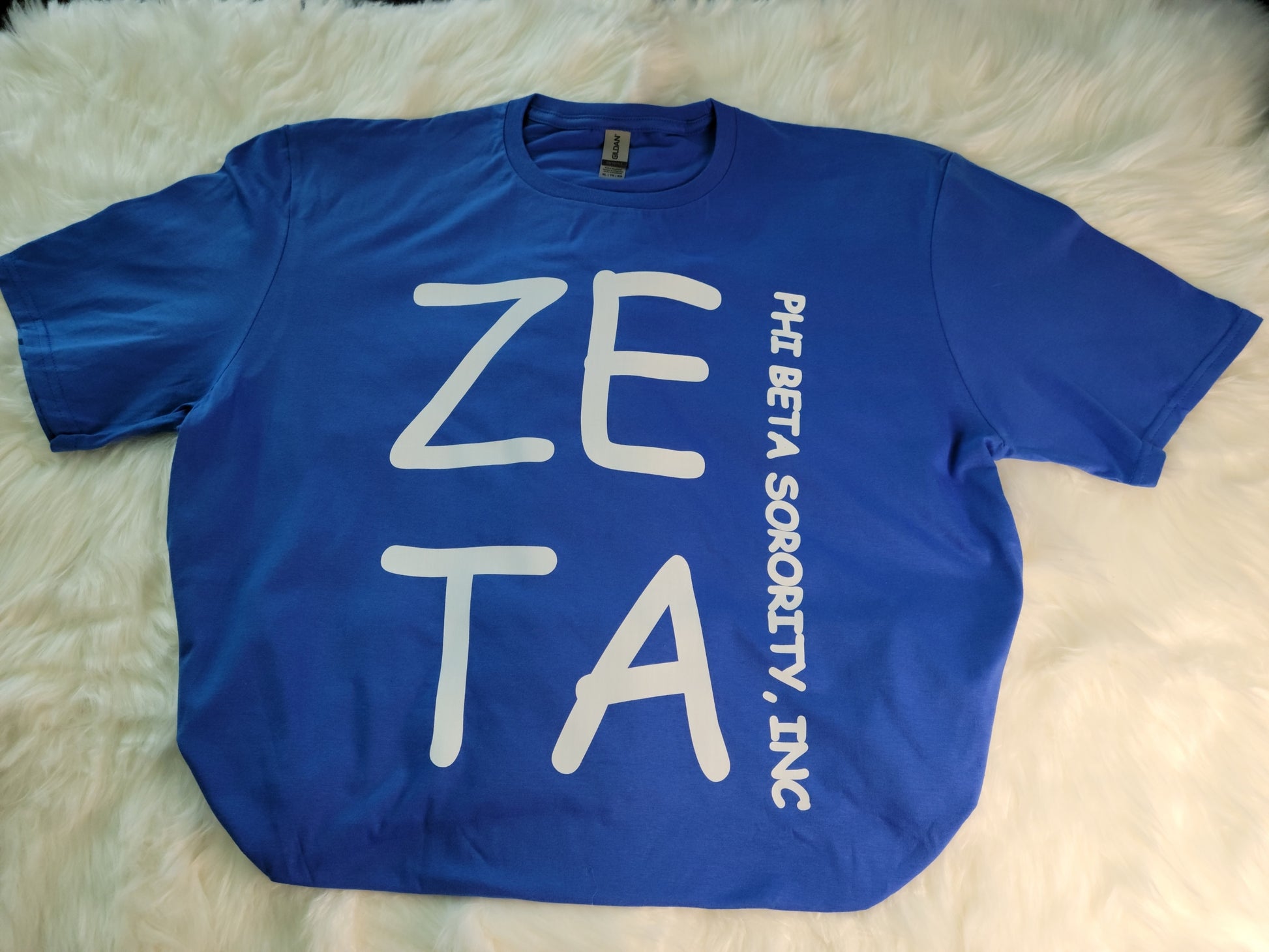 Zeta Phi Beta stacked letters short sleeve t-shirt makes a statement. This shirt is 100% cotton and available in one color.